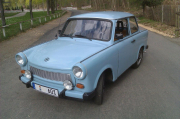 Habe den Trabi erst kürzlich erstanden. Er ist eigentlich gut in Schuss, hat wenig Rost (vor allem im Motorraum). Leider hat er einige Lackschäden und ist ein bisschen verbastelt: Der Vorvorbesitzer hat das alte Armaturenbrett eingebaut, dort sind einige nicht originale Instrumente eingebaut (u.a. Tankanzeige, Temperaturanzeige und Wartburgtacho), darunter ist blauer Stoff aufgeklebt. Ausserdem ist eine Domstrebe im Motorraum verbaut und die Hackscheiben schwarz abgeklebt, sowie mit Rollos versehen. Die rechte Tür hat an den Scharnieren etwas abbekommen und passt nicht mehr 100%ig, die Motorhaube hat sehr seltsame Spaltmaße (vielleicht ein Unfall, ist aber beim Fahren nicht merkbar).
