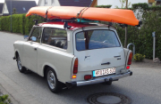 Trabant Kombi in Sonderwuschausführung, Bj. 08/89. Einen Vorbesitzer im Bezirk Rostock (A) und zwar in der Nähe von Stralsund. Seit Dezember 2007 mein ständiger Begleiter bei Wind und Wetter und vorzugsweise für etwas längere Touren.