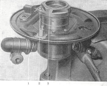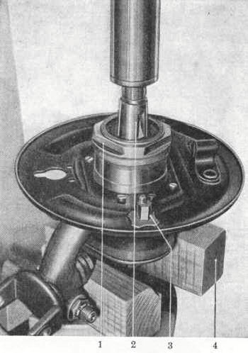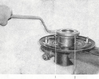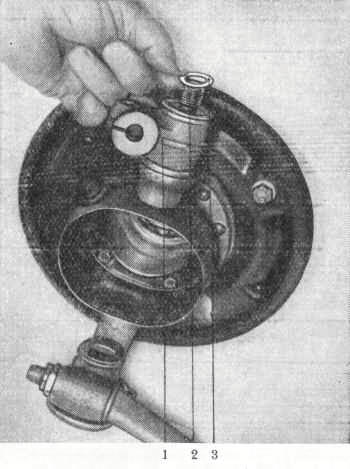 Der Ausbau des Lenkerlager-Zapfens erfolgt durch Herausschlagen des Kegel-Kerbstiftes (11/2).