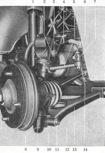 Durch den Frontantrieb bedingt, sind die Vorderräder einzeln aufgehängt, oben an der Querfeder und unten am Querlenker. Das Schwenklagergehäuse ist mittels Federgabel und äußeren Lenkerlager an der Querfeder und dem Querlenker befestigt. Die Querlenker bewirken, dass sich der Sturz der Räder bei Belastung bzw. beim Durchfedern nicht verändert. Alle Anlenkpunkte sind in eingepressten Silentblöcken gelagert, hierdurch wirkt die Aufhängung weich und elastisch. Die Federgabel und das äußere Lenkerlager stellen beim Frontantriebssystem den Achsschenkelbolzen dar.