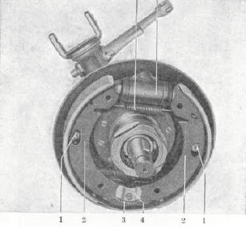 - Rückzugfedern für die Bremsbacken (4/3 u. 5) aushängen, Anlageplatte (4/4)