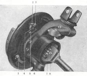 (8) Scharnierbolzen - Scheibenfeder für Bremstrommel abnehmen. Scharniergelenk vollst. (6/2) auf