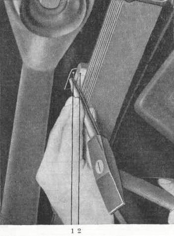 Ist bei der genannten Funktionsprobe über dem gesamten Hub ein Widerstand in Zugrichtung vorhanden, dann ist die Funktion des Stoßdämpfers gewährleistet, und er kann wieder eingebaut werden. Wird jedoch bei der Funktionsprobe in der oberen Kolbenstellung nach mehrmaligem Pumpen ein Leerhub festgestellt, dann liegt in den meisten Fällen Ölverlust vor. Die Ölfüllung wird wie folgt durchgeführt: