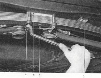 (1) Blechlasche (2) Federanschlag - Sechskantschrauben (4/1) für Federbefestigung abschrauben (19 mm SW).