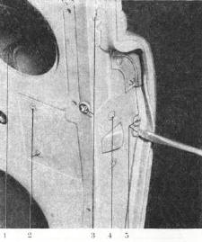 - Vier Schrauben (6/1) für Befestigung des Schlosses abschrauben.