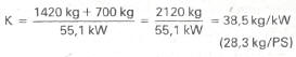 Die errechneten 38,5 kg/kW (28,3 kg/PS) liegen im gewünschten Bereich von 34... 41 kg/ kW (25...30 kg/PS).